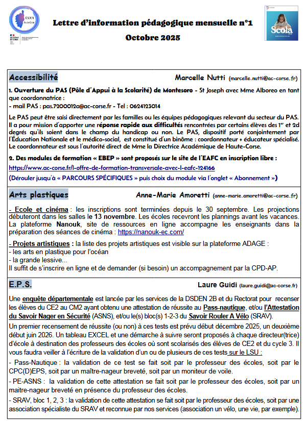 Mesdames et Messieurs les Directrices, Directeurs, Enseignantes, Enseignants et AESH,