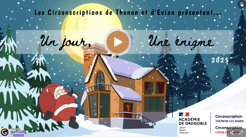 Un calendrier mathématique proposé par les circonscriptions d’Evian et Thonon, où vous découvrirez chaque jour une énigme à résoudre avec les élèves.