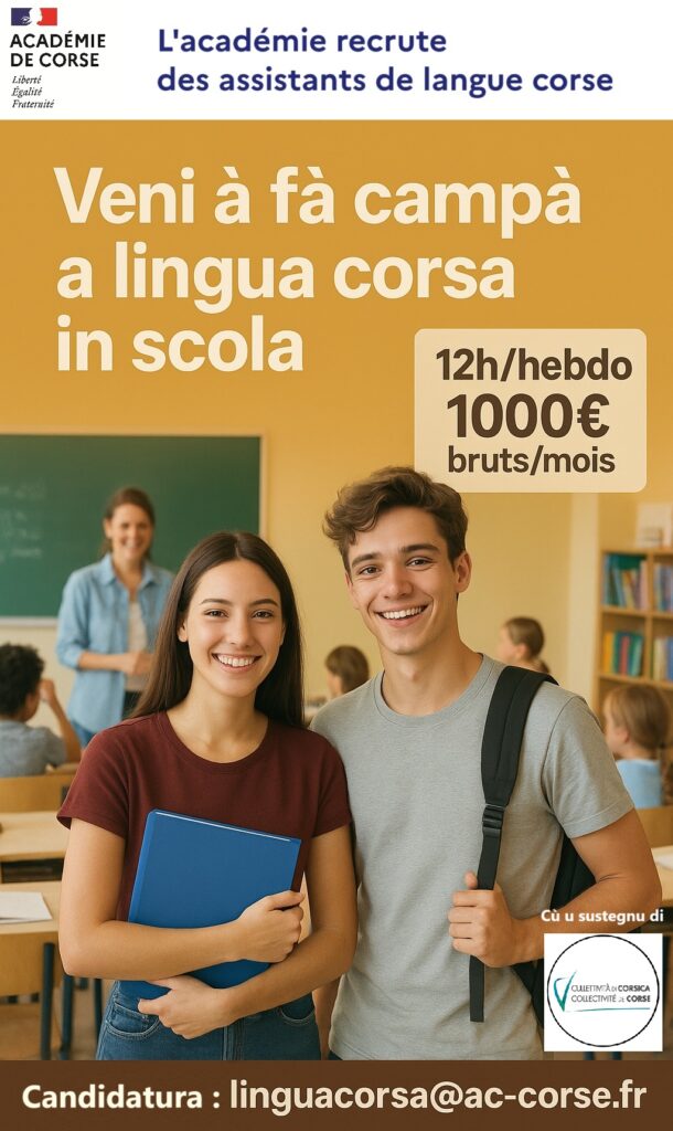 Les candidatures, accompagnées d’un curriculum vitae et d’une lettre de motivation, sont à renvoyer à linguacorsa@ac-corse.fr avant le 10 décembre 2025.