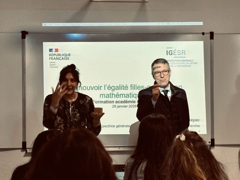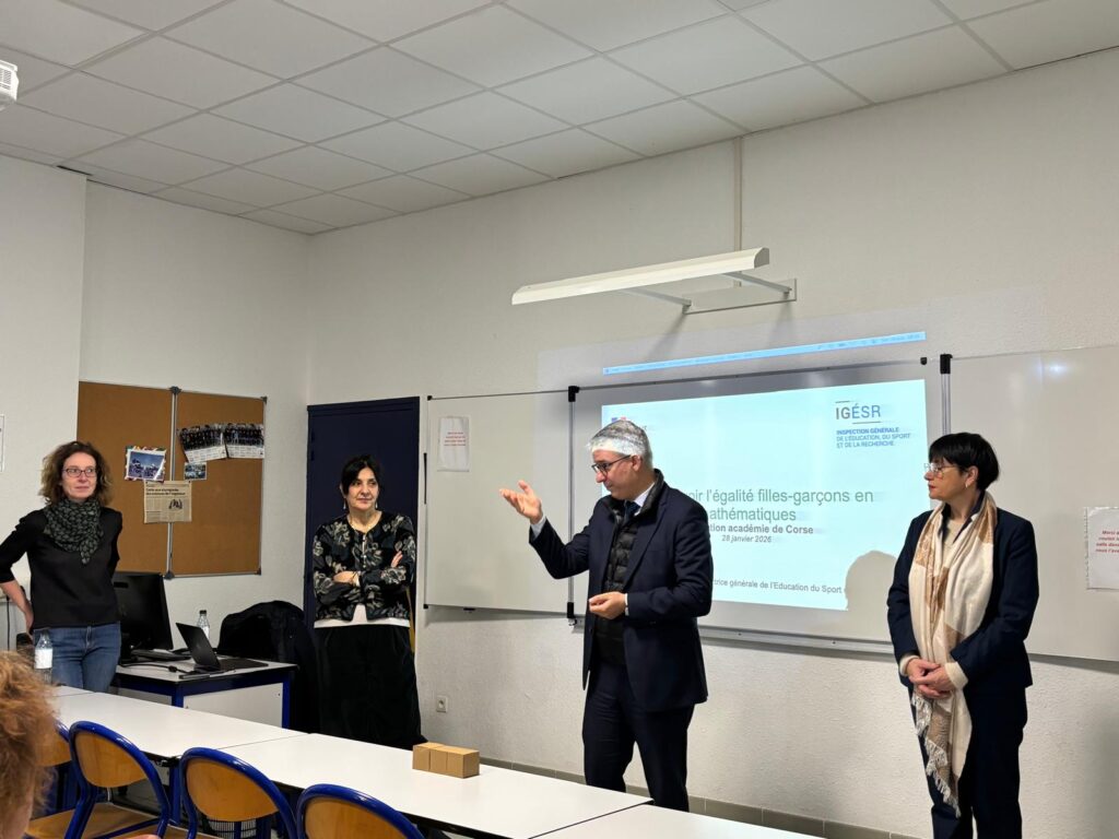 L’Académie de Corse a récemment accueilli Madame Nathalie Sayac, Inspectrice Générale de l’éducation, du sport et de la recherche, et Madame Nadine Grapin, didacticienne des mathématiques pour une journée de formation et d’échanges, en présence de Monsieur le Recteur de la région académique de Corse. Cette journée a été consacrée à des échanges autour de la lutte contre les stéréotypes de genre dans l’enseignement des mathématiques.